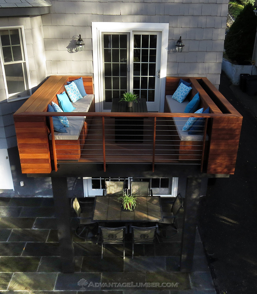 Tuckahoe, NY - My husband and I are both architects and designed and built this deck on our house together. We used Cumaru. When we found the Cumaru on your website, we fell in love with it. It did not disappoint. We thought it was easy to work with and is just beautiful. We applied the Ipe Oil to it. Because of our small yard, we wanted a small, intimate deck off of our living room. We wanted it to be an extension of our living room, with comfortable seating built-in seating. We just completed the deck. On the right hand side, behind the bench, there is a built-in planter where we will plant grasses in the spring time.